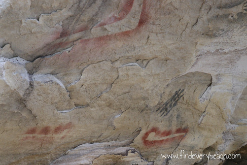 Once again quoting the national parks website "62m-long sandstone wall featuring 2000 engravings, ochre stencils and free-hand paintings adorning the sandstone walls. This is one of Australia’s finest examples of stencil art. See if you can find boomerangs, hands, feet, stone axes, shields, nets and an assortment of animal tracks".