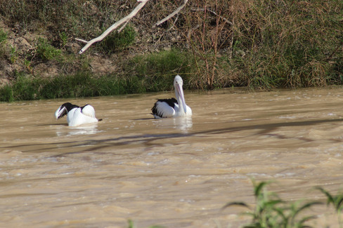 A highlight for me in crossing the weir seeing the Pelicans so close at hand - busily fishing in the surging water of the weir.